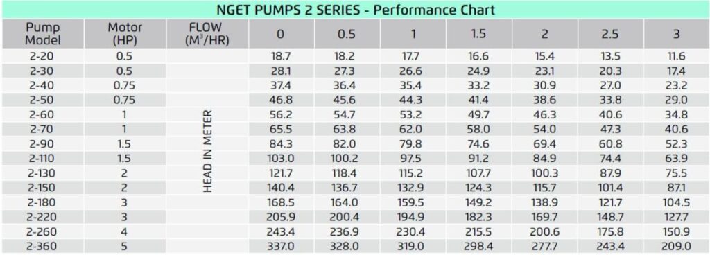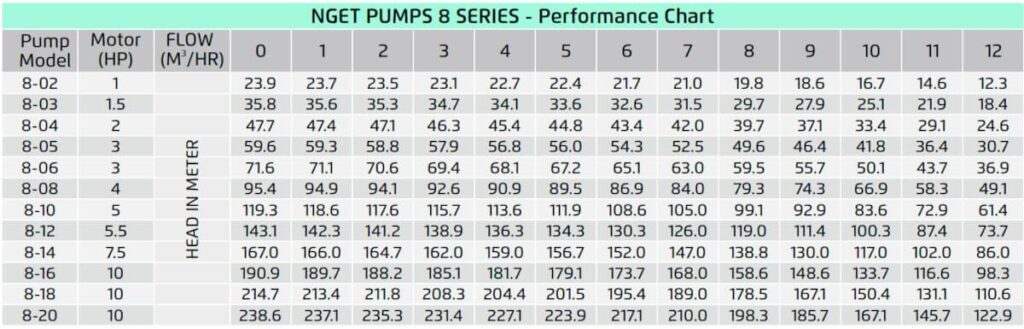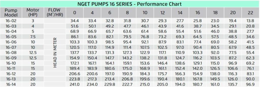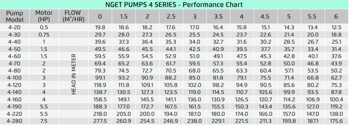 NGET Pumps Performance Chart